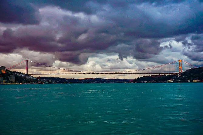 Passando sotto il Ponte del Bosforo, ho scattato foto alla Fortezza di Rumeli, le sue antiche mura di pietra sembravano dorate sotto la luce del pomeriggio. Abbiamo costeggiato il Palazzo Dolmabahce e il Palazzo Beylerbeyi; Cem ci ha raccontato aneddoti sugli sultani ottomani che organizzavano feste qui (pare fossero golosi di dolci). La cucina ha preparato del pesce fresco alla griglia, semplice ma gustoso, con limone ed erbe, e c’era anche un’opzione vegetariana. Il profumo si diffondeva sul ponte aperto mentre passavamo davanti alla Torre di Leandro. A un certo punto, mi sono sporguto e ho visto dei delfini inseguire la scia della barca — una sorpresa inaspettata.