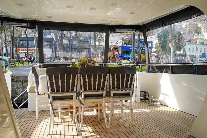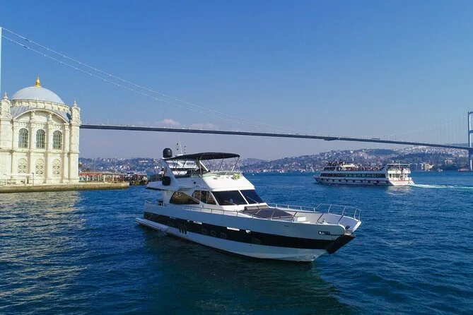 Il tuo giorno comprende due ore a bordo di uno yacht privato di lusso che naviga sul Bosforo di Istanbul, con una guida locale professionale che racconta storie mentre passi davanti a siti iconici. Vengono serviti frutta fresca di stagione, biscotti deliziosi e baklava insieme a bevande gratuite — limonata fatta in casa con menta, tè o caffè — e c’è un bagno a bordo per goderti la crociera senza pensieri fino al ritorno a terra.