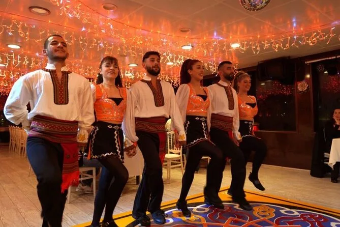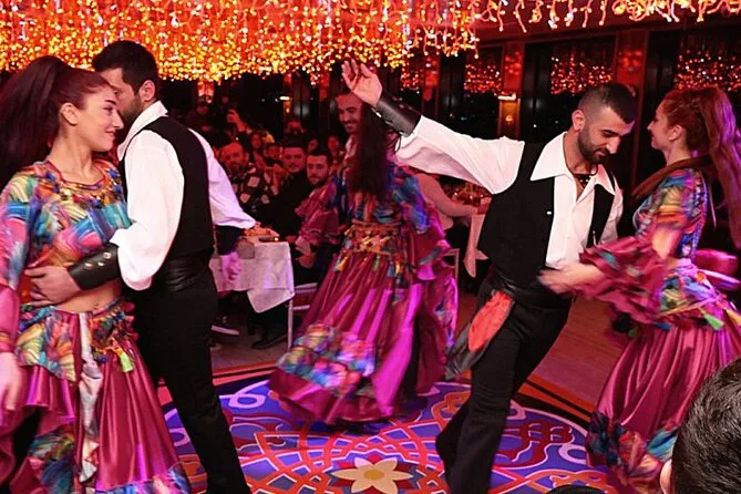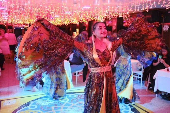 La tua serata include il trasferimento dall’hotel nel centro della parte europea di Istanbul prima di salire a bordo della crociera sul Bosforo. Godrai di un menu completo con bevande analcoliche illimitate mentre assisti a spettacoli tradizionali dal vivo: cerimonia dei dervisci rotanti, danze popolari da tutta la Turchia (e sì, anche una ballerina di danza del ventre), più musica dal vivo e intrattenimento con DJ prima di tornare al punto di partenza per il rientro in hotel.