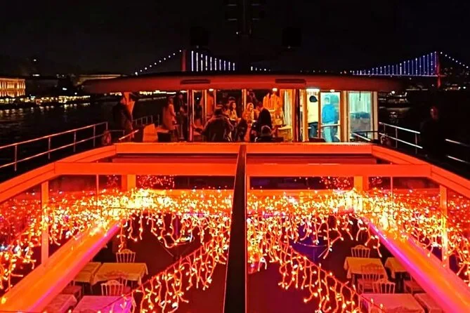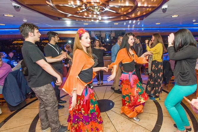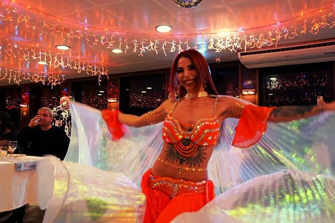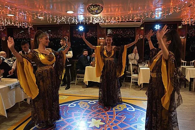 La crociera comprende cena con bevande analcoliche illimitate, musica dal vivo, spettacoli tradizionali turchi (dervisci rotanti, danze popolari), esibizione di danza del ventre, DJ set e trasferimento da/per hotel nel centro della parte europea.