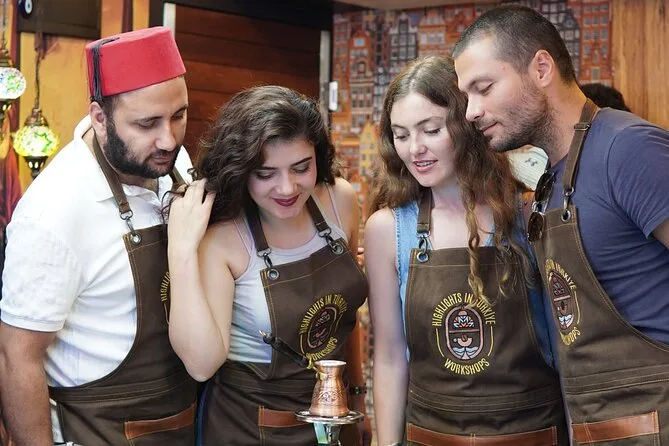 Ti sentirai subito a casa preparando il caffè turco sulla sabbia a Istanbul insieme ai locali, imparando metodi tradizionali (e assaggiando il caffè Menengiç), scambiando storie davanti ai dolci e provando la lettura della fortuna, per poi portare a casa il tuo set cezve. Un’esperienza calda, pratica e piena di piccoli momenti da ricordare.
