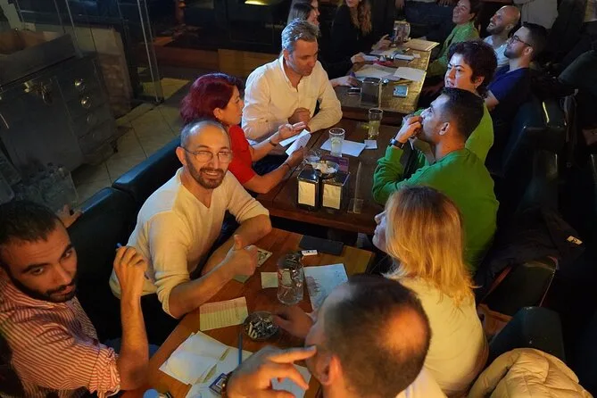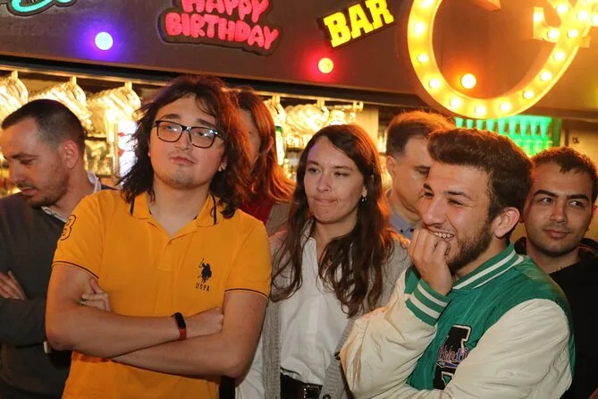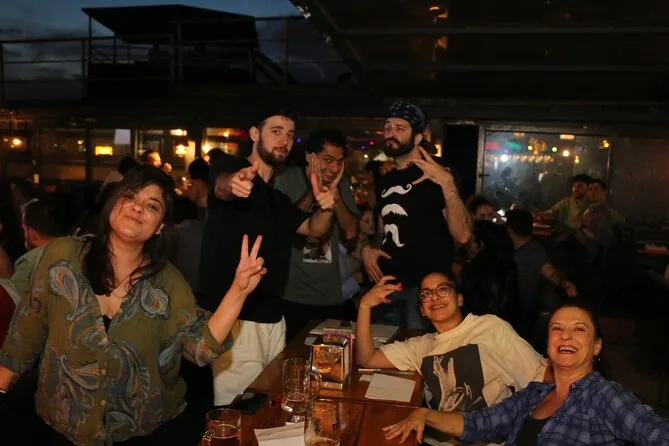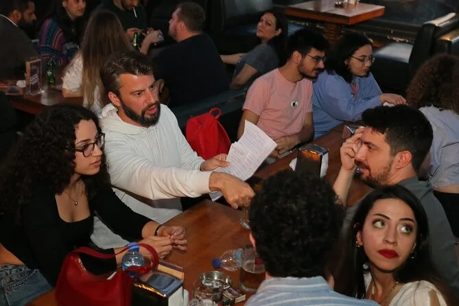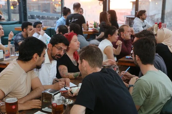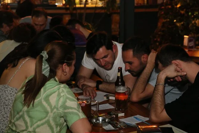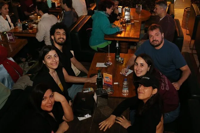 La tua serata include l’ingresso a Sanat Teras e la partecipazione completa al quiz bilingue più longevo di Istanbul—guidato in inglese e turco—con tante occasioni per socializzare davanti a un drink, prima di tornare a casa o restare per il karaoke se ti va.