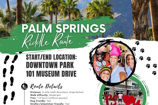 Uscirai all’aperto con amici o famiglia e scoprirai Palm Springs in modo nuovo—risolvendo enigmi, imparando curiosità e condividendo risate mentre esplori al tuo ritmo. Perfetto per gruppi che vogliono qualcosa di attivo ma senza stress.