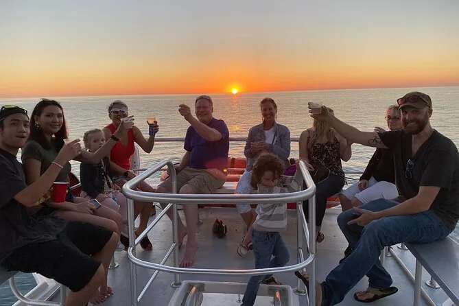 La tua serata comprende una navigazione di due ore attraverso Clearwater Pass verso il Golfo (se il tempo lo permette), l’avvistamento di delfini lungo l’Intracoastal Waterway con commento dell’equipaggio locale, un brindisi con champagne gratuito se hai più di 21 anni (porta un documento), l’accesso ai bagni a bordo e la possibilità di acquistare birra, vino, hard seltzer o bibite durante il viaggio.