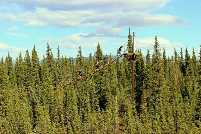 La giornata include il pickup andata e ritorno dagli hotel selezionati vicino a Denali, tutta l’attrezzatura necessaria per sette zipline e sei ponti sospesi, oltre alla guida di personale locale certificato che garantisce sicurezza (e divertimento) dall’inizio alla fine.