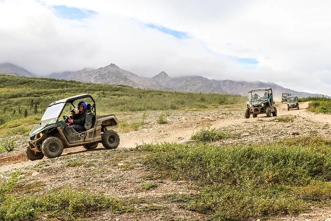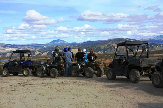Il tuo giorno include il pickup e il rientro in hotel da strutture selezionate intorno a Denali, tutto l’equipaggiamento di sicurezza necessario per guidare un ATV singolo o side-by-side, e la guida di un esperto locale che ti condurrà lungo sentieri impervi, riportandoti a casa sporco di fango ma con il sorriso.