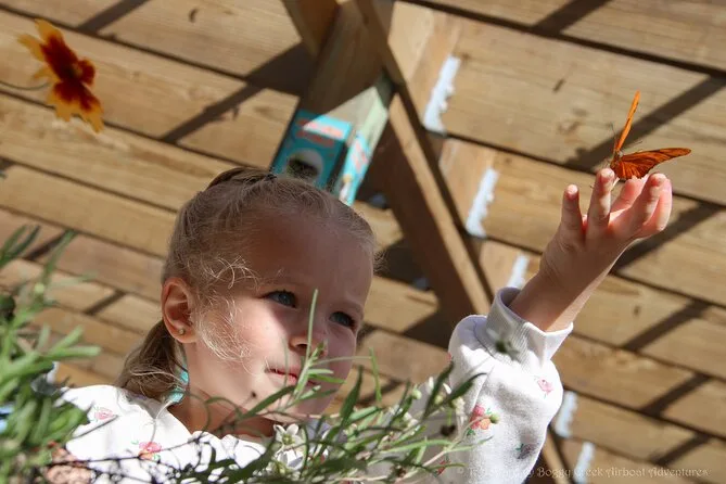 La tua giornata include l’ingresso a tutte le attrazioni del parco — Gator Oasis per vedere da vicino gli alligatori, il Giardino delle Farfalle di Lily per osservare la fauna locale, l’accesso al Villaggio dei Nativi Americani sotto le capanne chickee — e un’ora intera sul tuo airboat privato con capitano (inclusi protezioni per l’udito e giubbotti di sicurezza per tutti). Il pranzo non è incluso, ma c’è un BBQ sul lago se ti viene fame prima di tornare a casa.