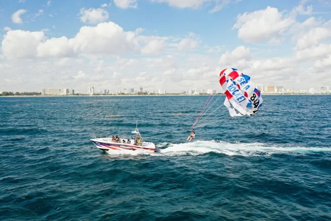 Sentirai il cuore battere forte mentre ti sollevi nel cielo sopra la Gold Coast di Fort Lauderdale, godendo della brezza marina e delle viste sullo skyline con Sea Rocket Parasailing. Con un capitano esperto e tutta l’attrezzatura pronta, potrai anche immergere le dita nell’Atlantico prima di tornare a terra — un’esperienza che ti resterà nel cuore.