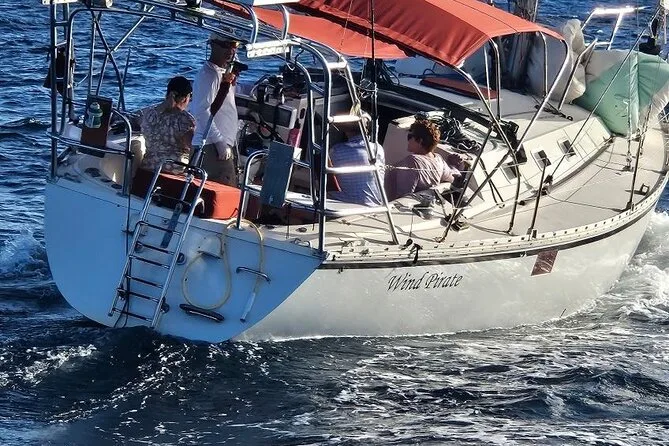 Ho passato mezz’ora disteso su un pouf a prua (mai avrei pensato di dirlo), il sole in faccia e solo il rumore delle onde contro lo scafo. C’erano altre persone a bordo — qualcuno festeggiava un anniversario, un altro leggeva tranquillo — ma nessuno si sentiva stretto. È semi-privato, a meno che non prenoti un charter privato; onestamente, condividere non è stato per niente un problema. Abbiamo portato degli snack perché a bordo c’è un frigo e piatti e tutto il necessario. L’acqua è inclusa, ma la prossima volta potrei portare qualcosa di più forte…