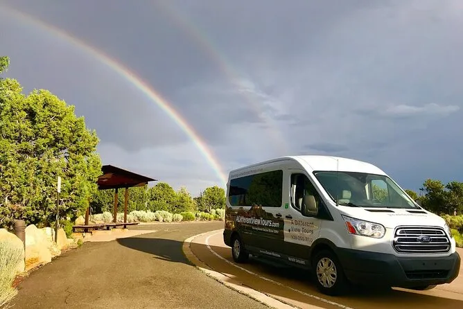Il pomeriggio include l’incontro con il gruppo all’interno del parco, con un comodo pickup al pennone del Visitor Center; trasferimenti confortevoli tra i punti panoramici del South Rim; acqua in bottiglia sempre a disposizione; ombrelli in caso di pioggia; binocoli per ammirare il fiume da lontano; coperte calde se la sera si raffredda; e tanto tempo per ascoltare le storie della guida locale prima di tornare alla tua auto dopo il tramonto.