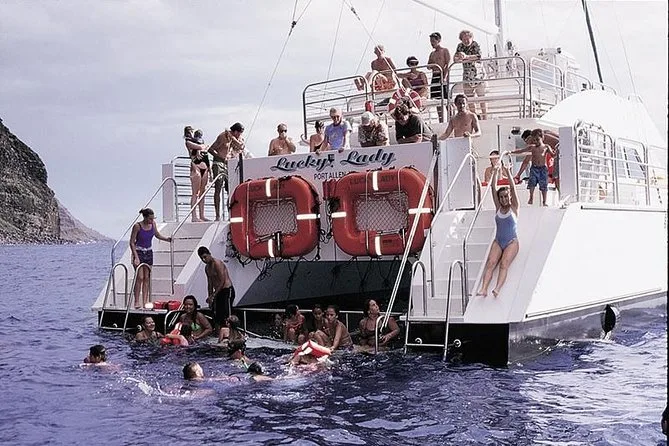 La tua giornata include una crociera lungo la Na Pali Coast di Kauai su una barca controllata, con capitano e equipaggio esperti e certificati dalla US Coast Guard. Riceverai tutta l’attrezzatura per lo snorkeling con istruzioni professionali e docce con acqua dolce a fine tour. Il pranzo prevede panini da preparare a piacere con patatine e insalata di pasta, accompagnati da bibite o drink in stile isolano—birra, vino e Mai Tai per chi ha più di 21 anni. Tutti i dispositivi di sicurezza sono inclusi; porta solo il tuo spirito d’avventura (e magari una giacca impermeabile).