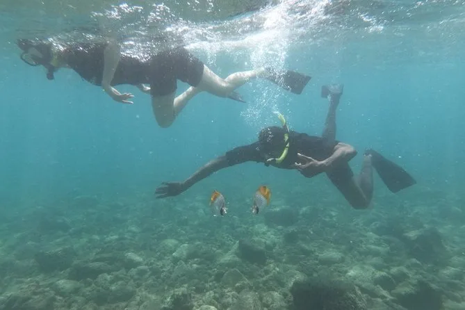 Tutta l’attrezzatura è inclusa (maschera, pinne, boccaglio) e sono disponibili dispositivi di galleggiamento per i principianti.