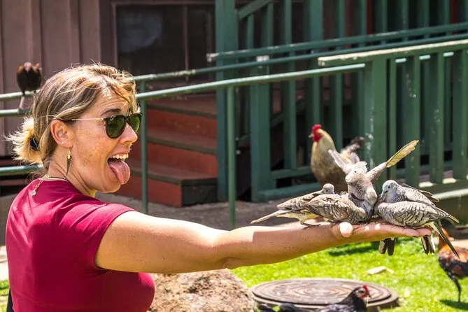 Abbiamo iniziato dalla Kauai Coffee Company, che si sente già dall’aria nel parcheggio, con quel profumo di chicchi tostati. Ho fatto finta di capire cosa fosse una “tostatura media” ma mi sono goduto soprattutto i piccoli assaggi all’ombra di un grande albero. La passeggiata autonoma tra i filari di caffè era rilassante — uccelli ovunque e un gallo che sembrava il padrone di casa. Non sono un grande fan del caffè, ma alla fine sono tornato a casa con due sacchetti (la miscela alle macadamia è ancora in cucina).