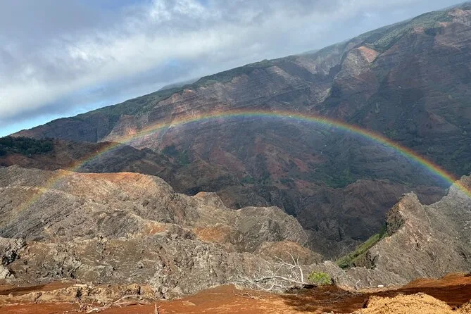 Il tuo giorno include pick-up in hotel ovunque sulla South Shore di Kauai (o aeroporto/porto), acqua in bottiglia per tutto il viaggio, ingressi a Waimea Canyon e Koke’e State Park, una mappa pratica di Kauai formato lettera, più il 10% di sconto al ristorante Koke’e Lodge prima del ritorno in comfort climatizzato.