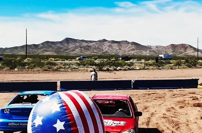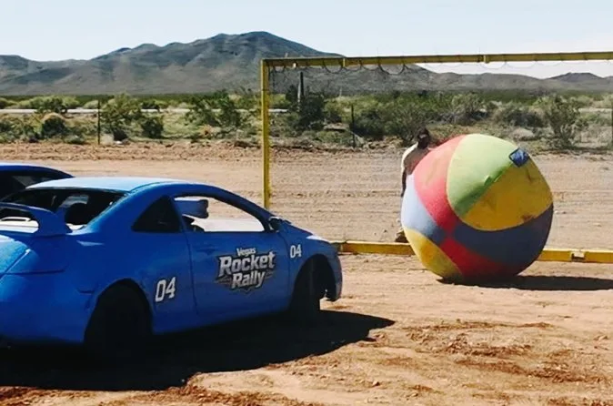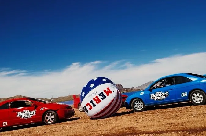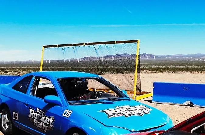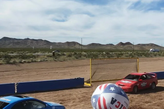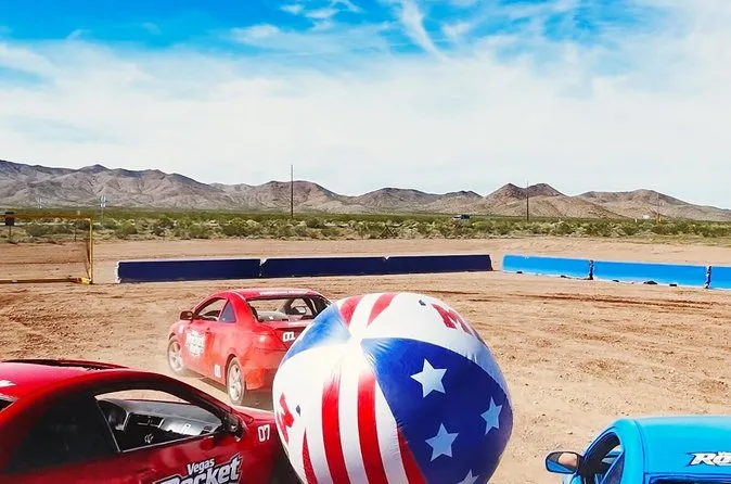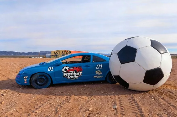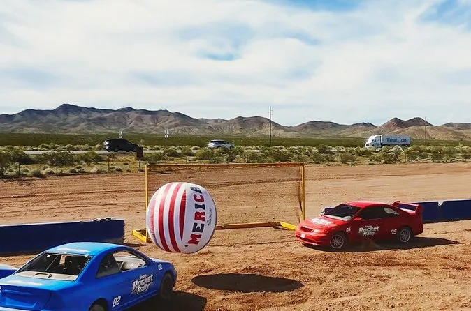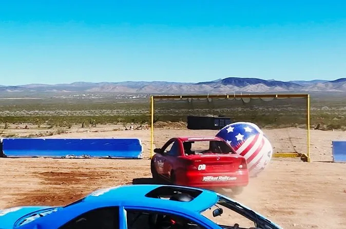 Guida vere auto da rally su un campo di terra vicino Las Vegas, cercando di segnare con un enorme pallone da calcio insieme ad amici o famiglia. Trasporto incluso e guida locale per sicurezza e divertimento, aspettati risate, sfide amichevoli e storie da raccontare a lungo.