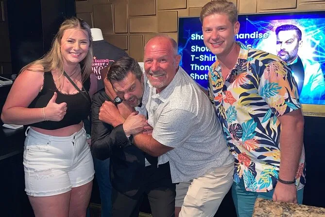 La tua serata include l’ingresso allo spettacolo di Ipnosi Comica di Steve Falcon a Myrtle Beach, con la possibilità di salire sul palco o semplicemente goderti lo show dal tuo posto. Dopo, resta per il meet-and-greet con foto prima di uscire nella notte—senza costi extra.