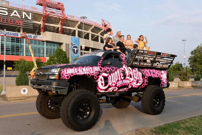 Salirai a bordo di Cowboy — sì, un vero monster truck — per un giro di 90 minuti tra le strade più vivaci e gli angoli più tranquilli di Nashville. Aspettati racconti dal vivo dalla guida locale, viste in prima fila su Broadway e Music Row, e qualche sorpresa (e risata) lungo il percorso. Divertimento rumoroso e scosso con il vero sapore della città.