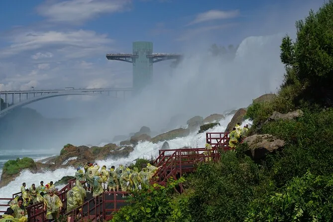 Il tuo giorno include l’ingresso a Maid of the Mist (stagionale) e Cave of the Winds con accesso al Hurricane Deck, più l’ingresso alla Niagara Falls Observation Tower—tutto guidato da un esperto locale. Poncho inclusi dove serve e la possibilità di esplorare i punti panoramici prima di tornare con trolley o bus quando preferisci.