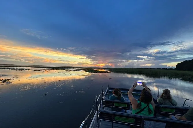 Scopri il lato selvaggio della Florida con questo giro in airboat al tramonto vicino a Orlando—vento in faccia, avvistamenti di animali guidati da un capitano locale e i colori che cambiano sull’acqua aperta. Include protezioni per l’udito e giubbotti di sicurezza per goderti tutto senza pensieri. Potresti anche sorprenderti a sorridere per un piccolo uccello in volo o per il silenzio che cala.