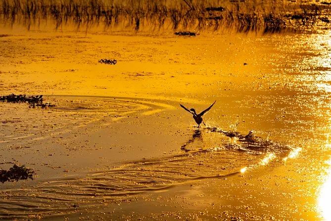 Abbiamo sfrecciato sull’acqua così veloce che i miei capelli si sono mossi da tutte le parti, poi Mike ha rallentato vicino a un gruppo di canne. Ha indicato gli occhi di un alligatore che spuntavano appena sopra la superficie — onestamente, quasi non lo vedevo finché non mi ha spinto a guardare meglio. C’era qualcosa nel modo in cui parlava di questi animali che ti faceva ascoltare con più attenzione. Un paio di aironi sono volati proprio davanti a noi, le ali che brillavano bianche contro il cielo arancione. Ho provato a scattare una foto, ma alla fine sono rimasto a guardarli senza staccare gli occhi.