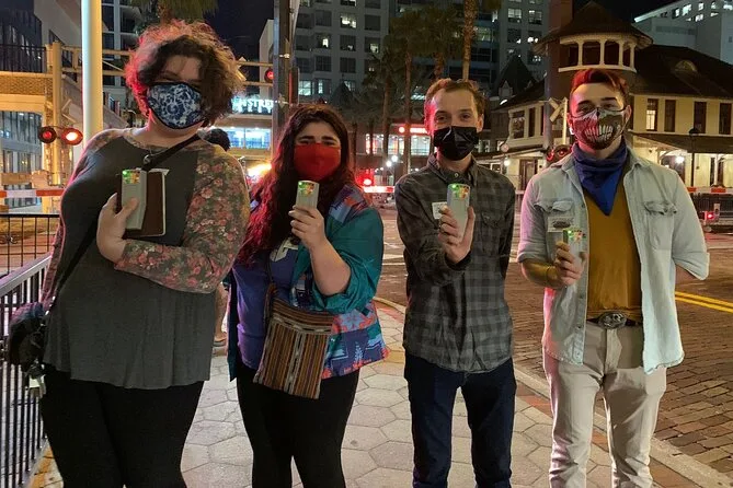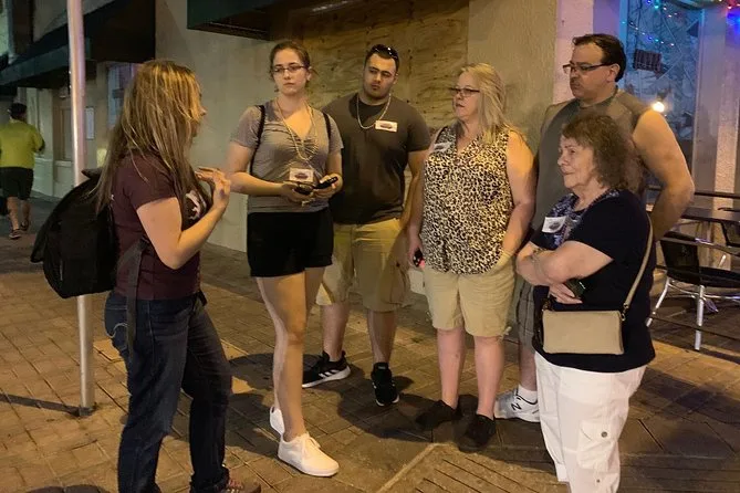 Per poco non perdevo il gruppo, mi ero perso seguendo un musicista di strada vicino a Church Street — niente di spaventoso, ma ha creato l’atmosfera giusta. La nostra guida, Jen, stava già ridendo con una coppia di Tampa quando sono arrivato. Mi ha passato un aggeggio chiamato K2 (sembrava un telecomando degli anni ’90) dicendo: “Tienilo d’occhio.” L’aria aveva quel leggero odore di pioggia sulla strada — tipico dell’estate in Florida — e sentivo già un po’ di tensione nell’aria.