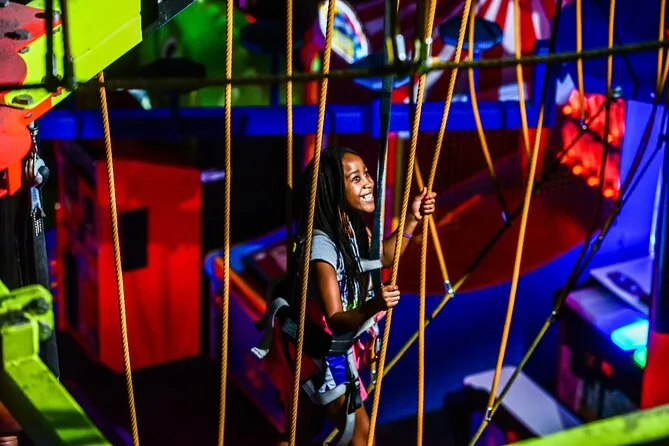 Dopodiché siamo saliti al percorso a ostacoli sospeso—tutto brillava sotto la luce nera e ammetto che le gambe mi tremavano un po’ sulle piattaforme instabili. La corsa 4D è stata pazzesca; sembrava di essere dentro a un videogioco e credo di aver urlato almeno un paio di volte (e non me ne pento). Il laser tag nel seminterrato è diventato subito una sfida—alcuni ragazzi del posto ci hanno dato una bella lezione, ma a nessuno importava troppo vincere. A quel punto la maglietta mi si era incollata alla schiena e i capelli avevano quella fastidiosa elettricità statica dopo tutto quel correre. Non abbiamo fatto tutto (impossibile se non resti tutto il giorno), ma ancora penso a quell’ingresso sottosopra e a come ti fa sentire che tutto può succedere.