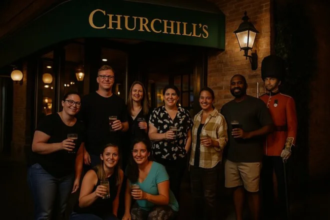 Li mi aspettava già vicino alla Statua dei Kings Guard quando sono arrivato, armeggiando con la torcia e sorridendo come se sapesse qualcosa che io ignoravo. Mi ha chiesto se eravamo pronti per “un po’ di coraggio liquido” — insomma, come si fa a dire di no? Il Churchill’s Pub aveva quel tipico odore di legno antico, mescolato a qualcosa di più pungente — forse un detergente o solo nervosismo. Il barista ci ha servito i primi drink (il mio troppo dolce, ma chi se ne importa), e Li ha iniziato a raccontare la prima storia ancora prima che uscissimo dal locale. Diceva che alcuni non se ne vanno mai davvero dal Churchill’s. Ho riso, ma poi il tintinnio di un bicchiere dietro di me ha fatto calare un brivido improvviso.