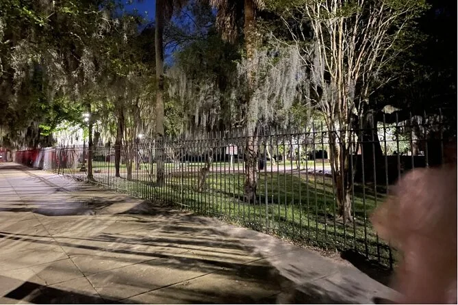 Tra un sorso e l’altro siamo arrivati davanti al The Marshall House. Di giorno sembra un normale hotel elegante del centro, ma di notte… Li ci ha parlato di amputazioni durante la Guerra Civile e giuro che dopo il racconto il mio drink aveva un sapore metallico. Il gruppo si è fatto più silenzioso mentre passavamo davanti al Colonial Park Cemetery — c’è qualcosa nel trovarsi lì a mezzanotte con un cocktail che ti fa rivedere tutte le battute fatte prima. Qualcuno ha detto di aver visto un’ombra muoversi vicino a una lapide; forse era solo vento, forse no. In ogni caso, nessuno voleva fermarsi troppo a lungo.