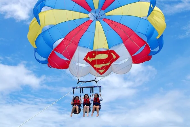 La prima cosa che ho notato è stato il modo in cui le cinghie dell’imbrago mi stringevano — un po’ strano all’inizio, un po’ strette sotto le gambe. Continuavo a muovermi mentre la nostra guida, Carlos, controllava le corde e scherzava sul fatto che spesso la gente urla prima ancora di staccarsi dalla barca (io pensavo di no, ma chi può dirlo). La barca profumava di crema solare e acqua salata, e avevo un misto di nervosismo ed eccitazione nello stomaco mentre ci allontanavamo dal molo accanto al Lobo Del Mar Café. Dietro di noi si sentivano i gabbiani litigare per qualcosa — rumorosi, niente affatto eleganti.