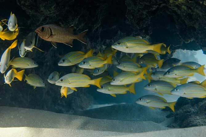 Il tuo giorno include l’uso di attrezzatura da snorkeling di alta qualità, la guida di esperti certificati (con bagnini presenti), ampi posti a sedere imbottiti sul spazioso catamarano, borse termiche integrate per conservare le tue bevande e un bagno a bordo per maggiore comodità durante la giornata in mare.