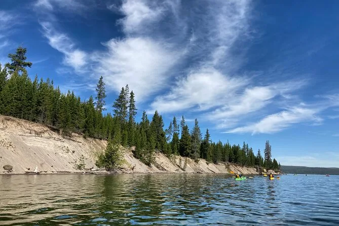 La giornata include incontro all’alba sul Yellowstone Lake con tutta l’attrezzatura da kayak fornita—giacche anti-spruzzi se fa freddo, guanti da pagaia se servono, kayak stabili con timone per facilitare la direzione, snack come barrette e frutta secca lungo il percorso, spazio asciutto per telefoni o fotocamere, e la guida naturalista esperta che conosce ogni angolo di queste acque.