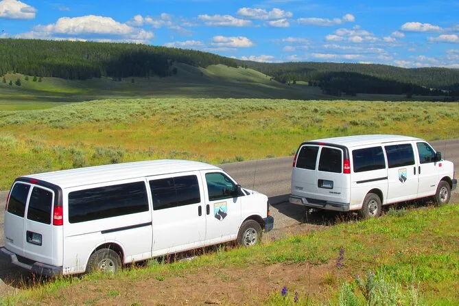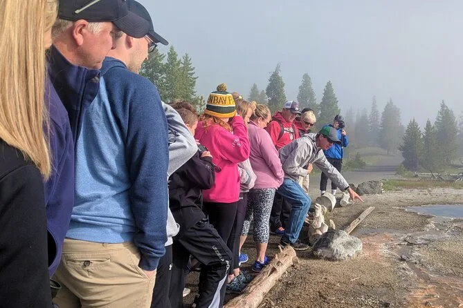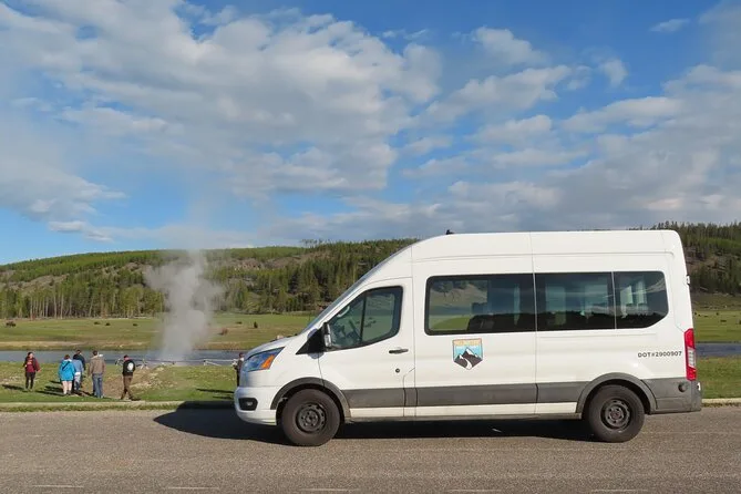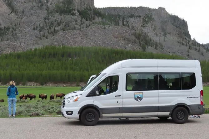 Il tuo giorno include trasporto comodo in van con grandi finestrini per avvistare la fauna, binocoli e cannocchiali per osservazioni sicure, pranzo al sacco con scelta di panini (anche vegani/gluten-free), snack, acqua in bottiglia e bevande calde a disposizione — più tanto tempo a ogni tappa per passeggiare sulle passerelle o semplicemente goderti il panorama prima di tornare a West Yellowstone.