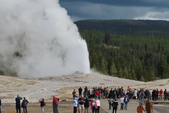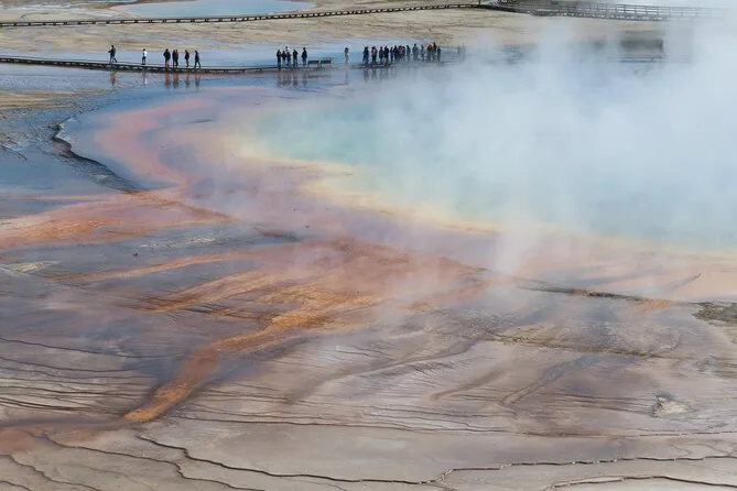 Inizia la giornata osservando la fauna lungo fiumi avvolti nella nebbia, poi cammina per ammirare i colori surreali della Grand Prismatic Spring. Guarda Old Faithful eruttare e riscaldati nell’antico inn, poi esplora i geyser sul lago e avvista bisonti nella Hayden Valley. Concludi con viste sul canyon che ti resteranno nel cuore.