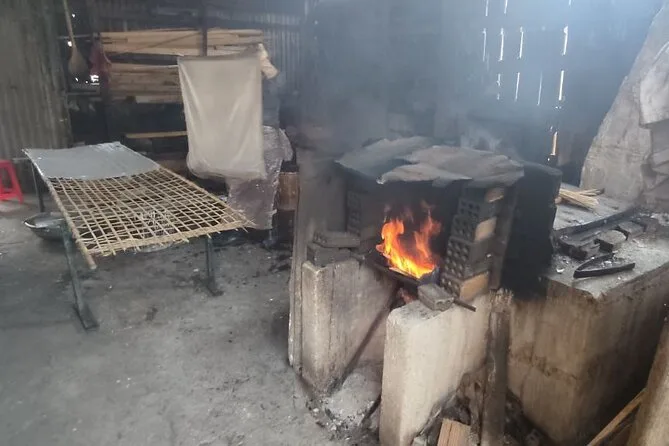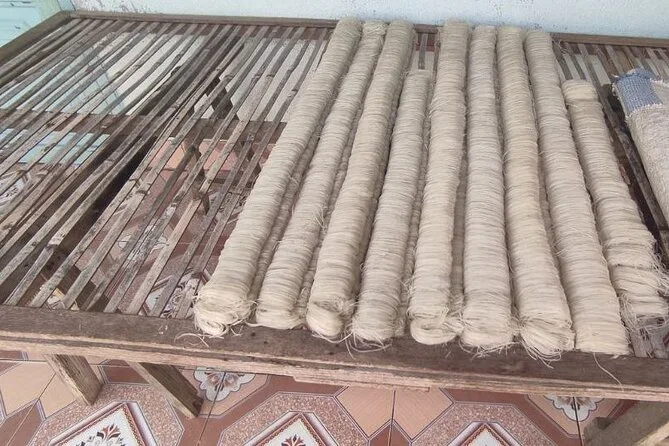 Il nostro giro ci ha portato in un villaggio K’ho. La guida—che è cresciuta lì vicino—ci ha raccontato storie sulla leggenda del Villaggio del Pollo che non troverai mai in una guida turistica. C’è qualcosa di speciale nell’ascoltare questi racconti proprio nel posto dove sono nati; ti rimangono dentro. Ci siamo fermati anche in una piccola famiglia che prepara i noodle a mano, dove abbiamo visto tutto il processo: stendere e tagliare la pasta. L’odore della farina di riso riempiva la cucina, e prima di ripartire ci siamo rinfrescati con un succo di canna da zucchero preso a un chiosco lungo la strada—dolce, ghiacciato, perfetto dopo aver guidato sotto il sole di mezzogiorno.
