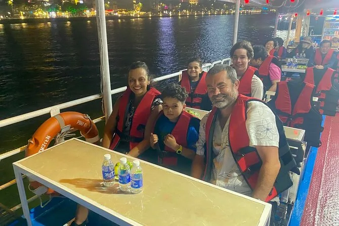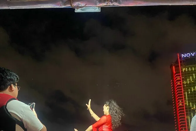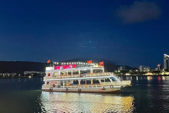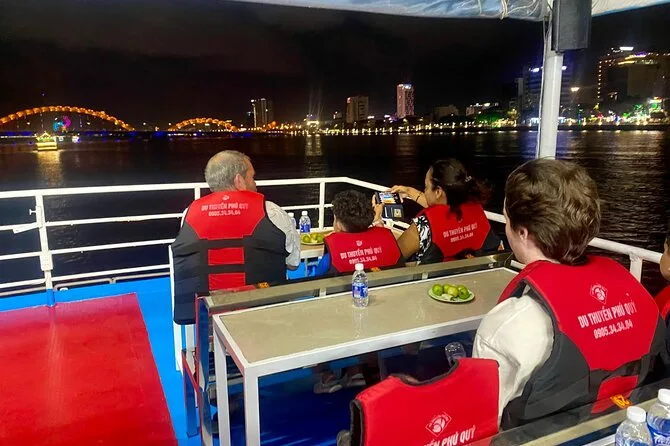 Con l’arrivo della sera, siamo saliti su una piccola barca per una crociera sul fiume Han. Le luci della città si accendevano una dopo l’altra e i ponti brillavano di colori al neon—soprattutto il Dragon Bridge, che nei weekend sputa fuoco (noi siamo arrivati un giorno dopo!). Piatti di frutta galleggianti e bevande fresche hanno reso l’atmosfera ancora più rilassata mentre scivolavamo accanto a nove ponti famosi. Da Nang di notte è un lato diverso—tranquillo ma vibrante.