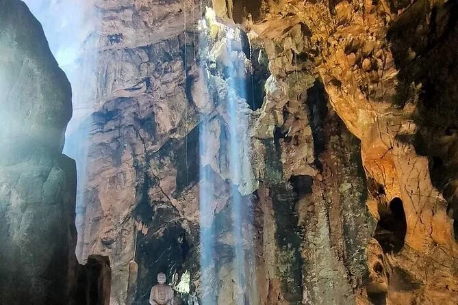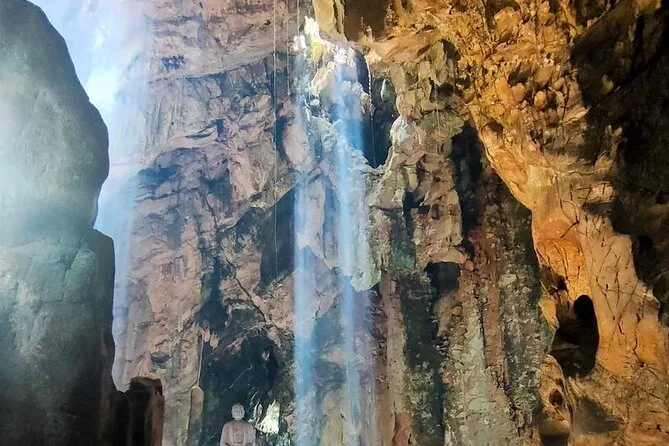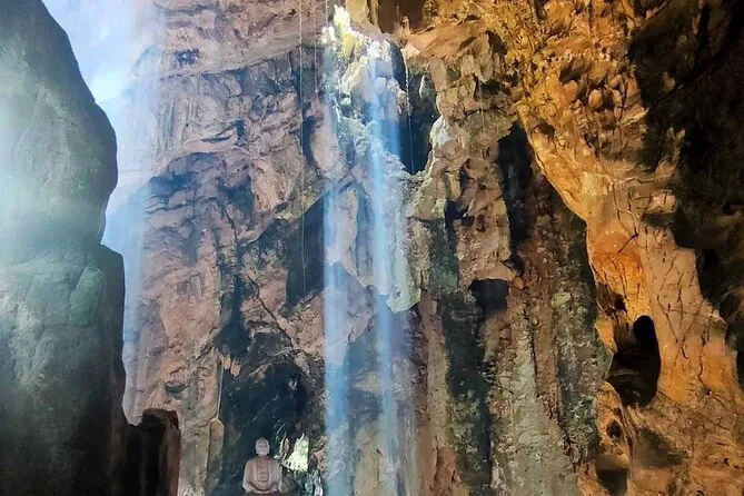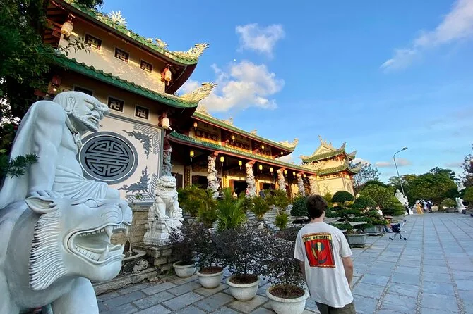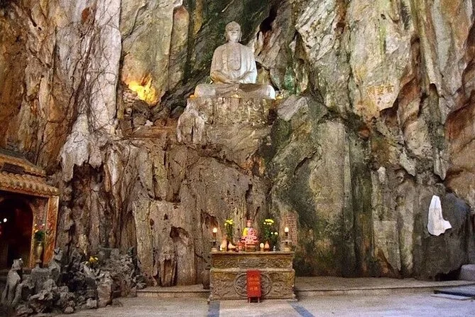Esplorerai grotte e templi alle Montagne di Marmo, vedrai artigiani scolpire statue di marmo a mano, ti rilasserai sulla spiaggia di My Khe, assaggerai lo street food autentico di Da Nang e concluderai con una crociera al tramonto sul fiume Han—tutto con una guida locale esperta che conosce ogni scorciatoia e storia.