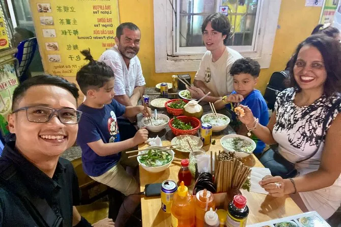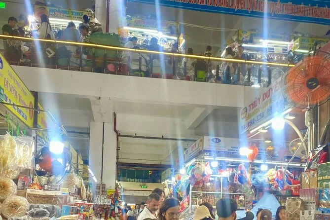 Poi ci siamo tuffati nello street food locale—bánh xèo croccanti che sfrigolano sulle piastre calde, caffè ghiacciato dolce dal sapore di cioccolato e ciotole di mì Quảng con arachidi e erbe aromatiche. Il mercato era un caos di motorini che si infilavano tra le bancarelle; un rumore forte ma in qualche modo rassicurante.
