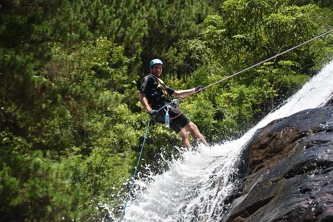 La giornata include pick-up e drop-off in hotel nel centro di Dalat, tutta l’attrezzatura da canyoning di alta qualità (muta, imbragature, casco), guide professionali in inglese che ti accompagnano passo passo, assicurazione di viaggio e permessi per il parco per la tua tranquillità—e un picnic sul fiume prima di tornare in hotel con foto ricordo incluse.