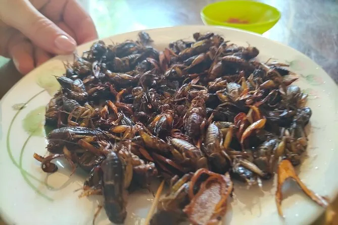 La tappa successiva mi ha sorpreso: una fabbrica di seta. Onestamente pensavo sarebbe stata noiosa, ma vedere quei minuscoli bachi da seta trasformarsi in un filo tangibile è stato ipnotico. Le macchine facevano un rumore ritmico mentre una donna ci mostrava come tirare i fili. Parlava poco inglese, ma con le mani raccontava tutto. Poi siamo andati a una fattoria di grilli (sì, davvero) dove ci hanno offerto grilli fritti con sale al peperoncino. Ne ho assaggiato uno. Croccante, niente male… ma probabilmente non diventerà il mio snack preferito.
