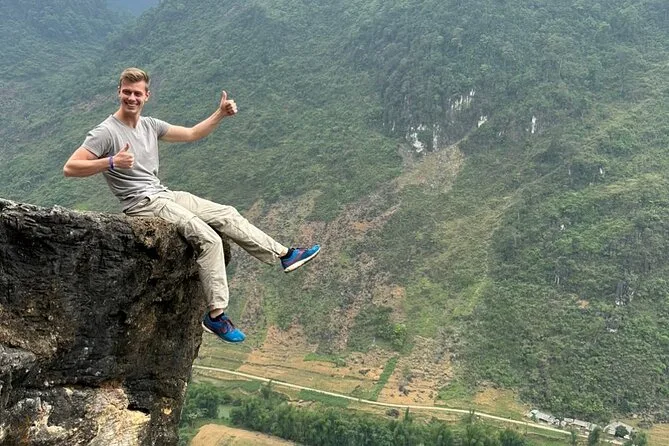 La mattina dopo faceva così freddo che si vedeva il respiro mentre salivamo verso la torre della bandiera di Lung Cu — il punto più a nord del Vietnam. Le mani mi si erano intorpidite sul manubrio, ma quel panorama… sai quando un posto ti fa sentire piccolo in modo bello? Ecco, quello è Lung Cu. Più tardi abbiamo attraversato il passo Ma Pi Leng con le scogliere che cadevano a picco sotto di noi e le nuvole incastrate tra le cime. Minh continuava a gridare “vai piano qui!”, ma il cuore già batteva forte per il panorama (e forse anche per le mie curve un po’ improvvisate). Quindi sì, se stai pensando a un’escursione di un giorno o al tour completo di quattro giorni — fallo senza pensarci. Questa strada ti entra dentro.
