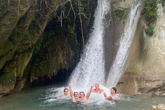 Porta il costume da bagno per la nuotata alla cascata di Du Gia.
