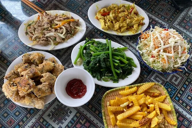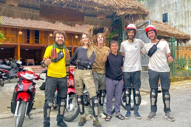 I tuoi giorni includono il noleggio moto con assicurazione e carburante, ingressi a tutti i siti, acqua lungo il percorso, guida in inglese che ti accompagna, accompagnatori per chi non guida, colazioni e pranzi vietnamiti abbondanti (con opzioni vegetariane), e pernottamenti in dormitori accoglienti ogni notte prima di tornare a Ha Giang nel tardo pomeriggio.