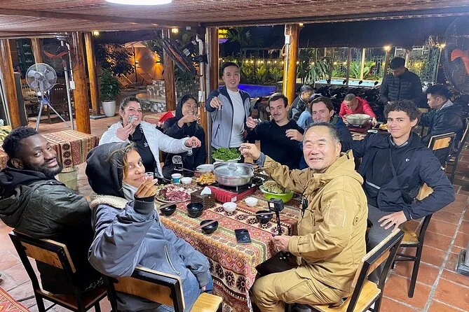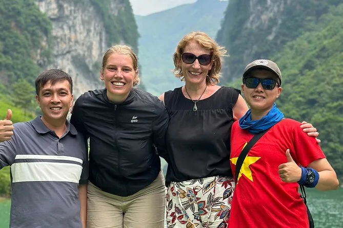 La mattina seguente iniziò con un caffè forte e uova fritte prima di affrontare il passo Ma Pi Leng. È famoso per essere pericoloso, ma quello che mi colpì fu il silenzio in cima — solo vento e voci lontane che rimbalzavano dal canyon. Facemmo un giro in barca sul fiume Nho Que; l’acqua era così verde da sembrare finta nelle foto, ma abbastanza reale da schizzare sulle mie scarpe. Il pranzo a Meo Vac fu veloce — ancora riso (non mi stancavo mai) e poi di nuovo in sella verso il villaggio di Du Gia, dove passammo la notte. Dopo cena c’erano le lucciole fuori — non le vedevo dai tempi dell’infanzia.