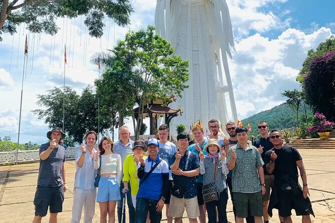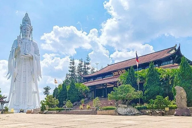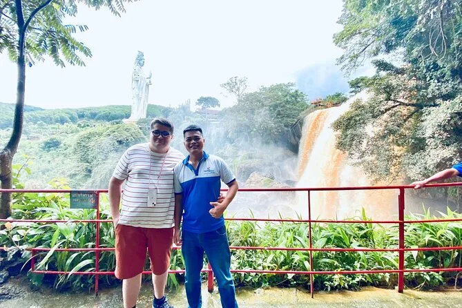 La seconda tappa è stata la cascata Elephant, o Lieng Rowoa come la chiamano alcuni. Qui il fragore è più forte—la senti prima ancora di vederla. Il sentiero per scendere è un po’ scosceso (fai attenzione!), ma la vista in fondo ripaga ogni passo. La nebbia ti avvolge e si sente un profumo di muschio e alberi antichi. Minh ci ha mostrato le liane che si avvolgono intorno ai tronchi, alcune vecchie di secoli. Vicino c’è anche la pagoda Linh An Tu, con una grande statua di Buddha che sembra vegliare su tutto. Ci siamo fermati qualche minuto ad ascoltare solo il rumore dell’acqua e i canti dei monaci in lontananza.