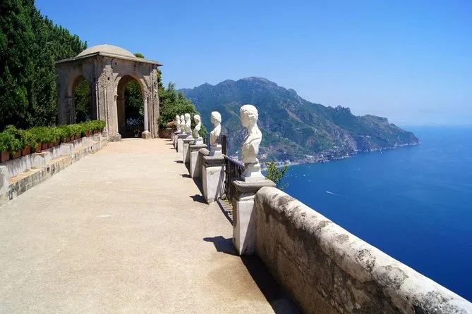 The itinerary includes time in Ravello where you can visit Villa Cimbrone Gardens independently.