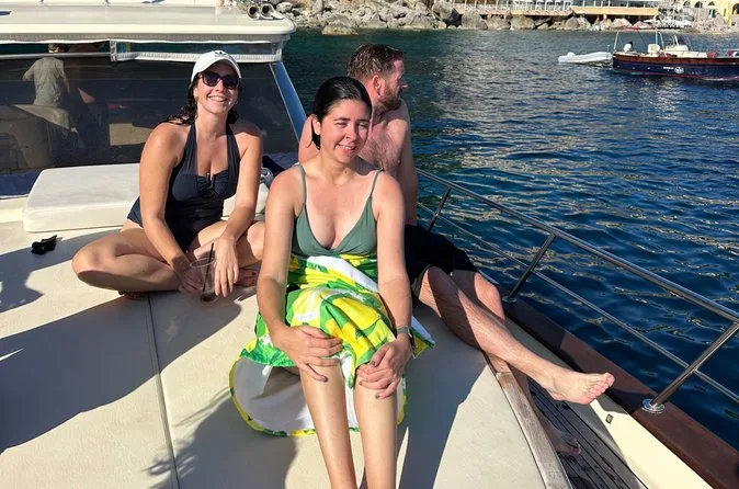 We slipped past those famous Faraglioni rocks—honestly, they’re even taller than I’d pictured—and everyone went quiet for a second as we drifted right under them. Antonio told us about the legend (kiss your partner for eternal love), and one couple actually did it, which made the rest of us laugh awkwardly. Then he steered us toward these hidden coves only locals seem to know. The water changed color every few minutes—deep blue to green so clear you could see straight to the pebbles below.