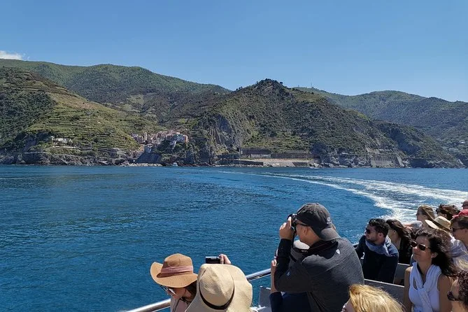 The tour includes stops in Manarola, Vernazza (with lunch break), and Corniglia.