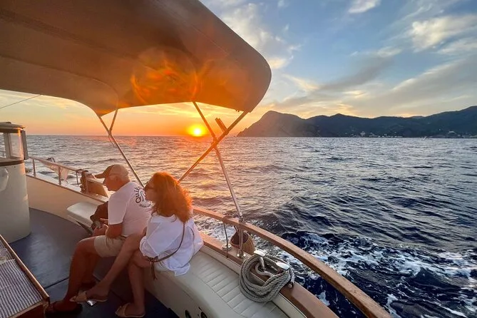 Your evening includes departure from Monterosso or Levanto pier with soft drinks, prosecco or white wine served alongside Ligurian snacks as you cruise past all five villages. You can swim using provided snorkeling equipment (and shower off afterward), stroll through Vernazza when possible, relax with music onboard, and use onboard restroom facilities before returning after dark.