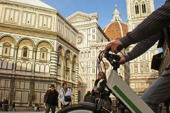 Your day includes use of an electric bike with helmet (and raincoat if needed), guidance from a licensed escort who shares local stories along the way, stops for water refills before departure, a complimentary gelato tasting in central Florence at journey’s end—and if you choose it while booking, a three-course Tuscan lunch at a classic trattoria downtown before heading off on your own again.