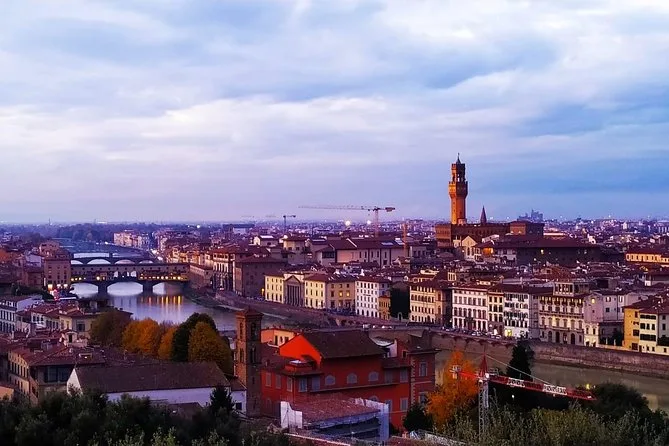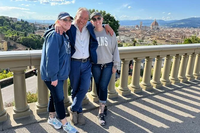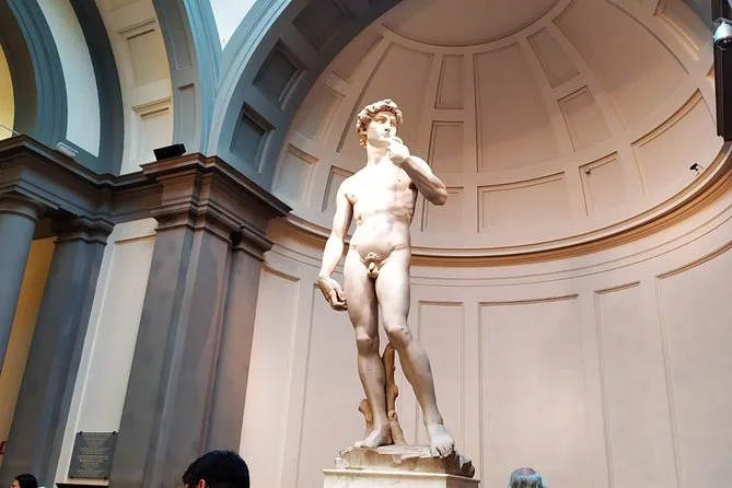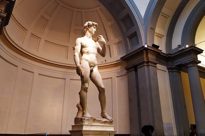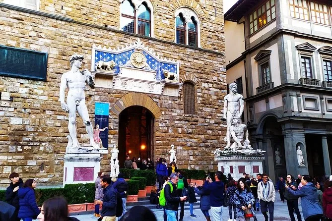 You’ll visit Santa Maria del Fiore Cathedral (outside), Baptistery of San Giovanni (outside), Giotto's Bell Tower (outside), Accademia Gallery for David, Piazza della Signoria, Ponte Vecchio, and Piazzale Michelangelo.